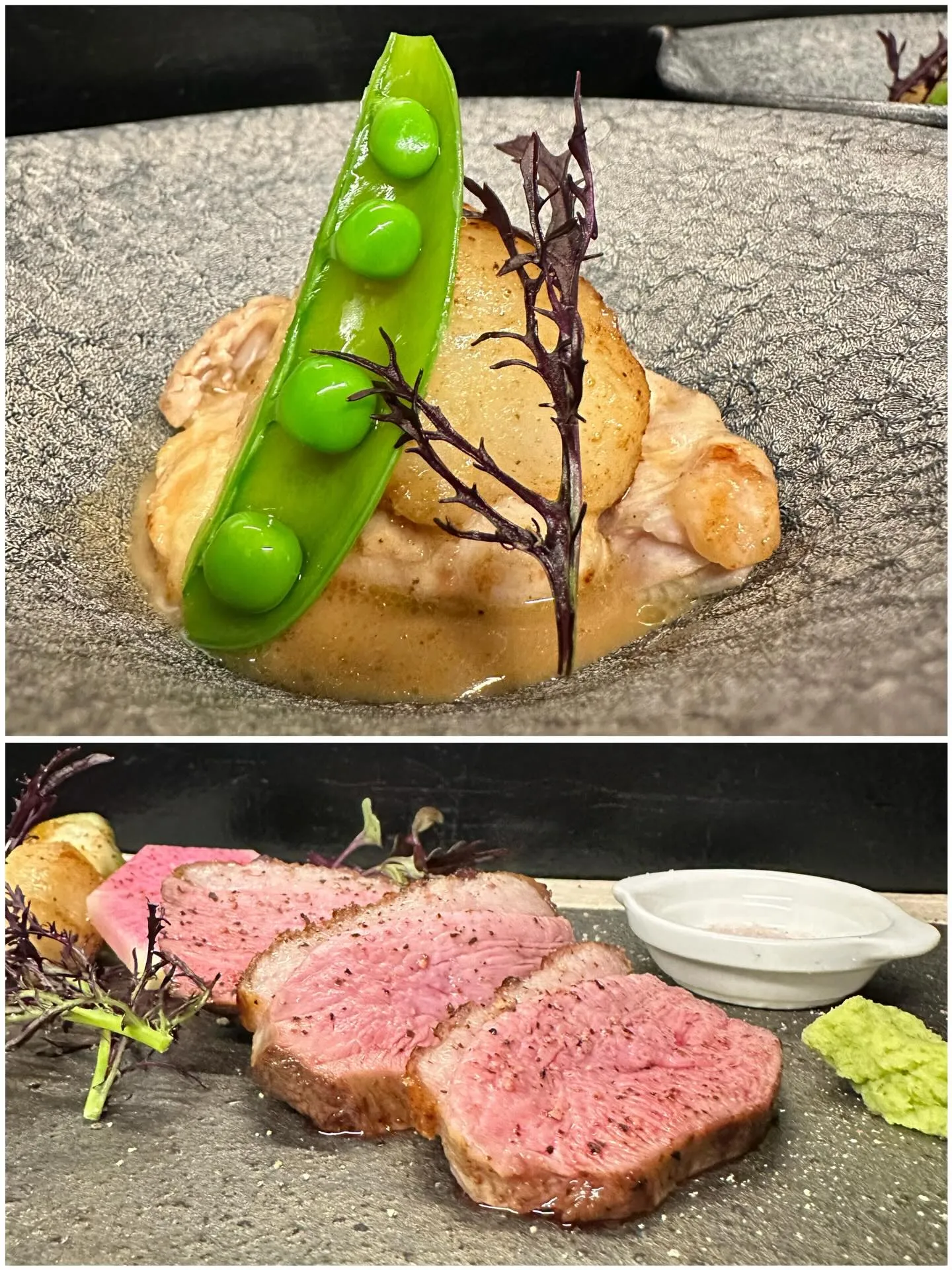 こんばんは!スタッフのりんかです🍫 こんばんは!スタッフのりんかです🍫本日は写真でお料理を紹介しますね📷1、2枚目が"おまかせ"コースのお料理になります。1枚目・大和肉鶏ハラミとカブラ~カラシのソース🍑~・倭鴨の藁焼き2枚目・倭鴨の…